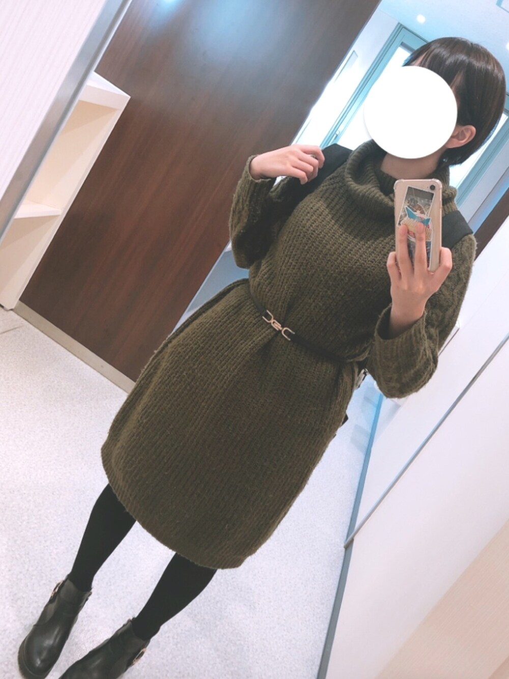 どこのニットワンピか忘れました 腰のベルトがアクセント
