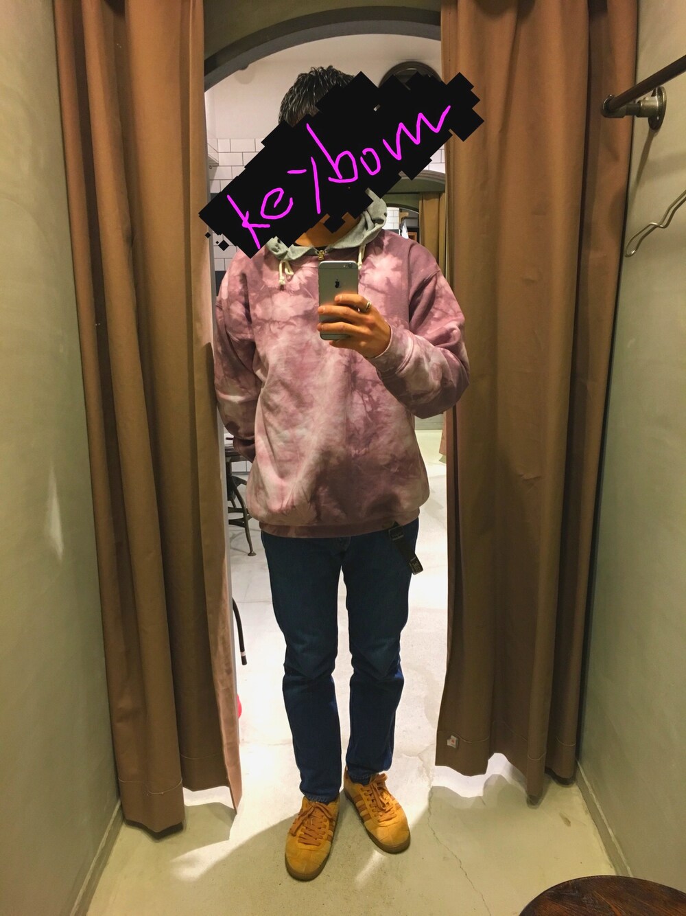 引く色合いのスウェット着てます…