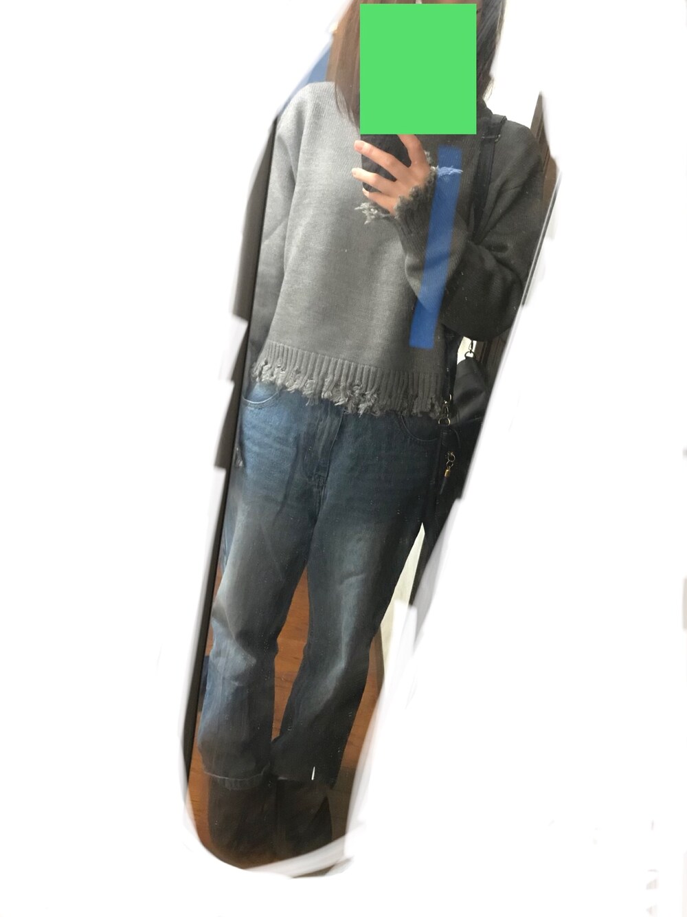 セーターの季節~😚 加工の際になんか青い線がついた(笑)