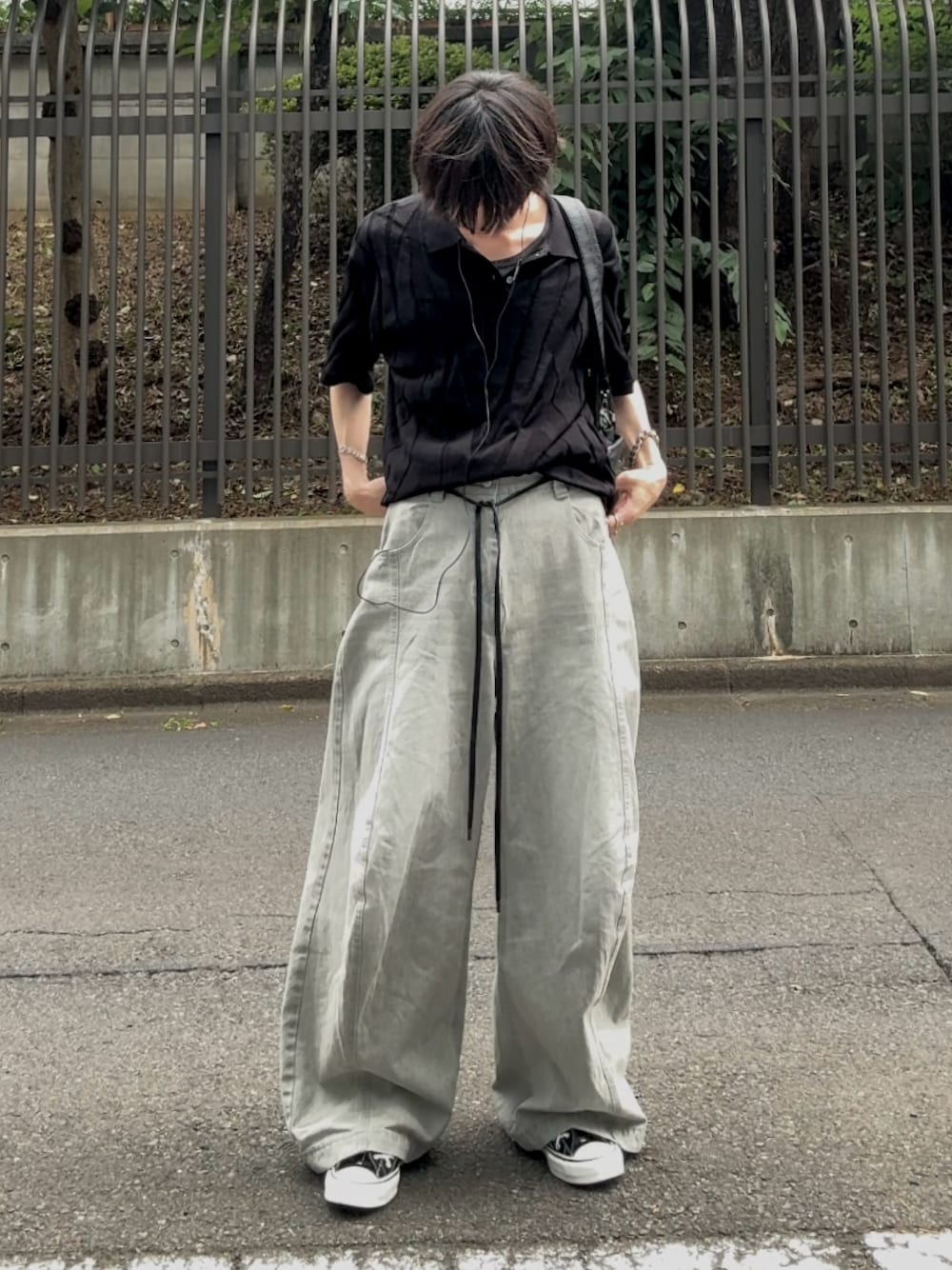 くま🧸のデニムパンツ「【EPNK】Switch slab wide denim pants / スイッチスラブワイドデニムパンツ」を使ったコーディネート