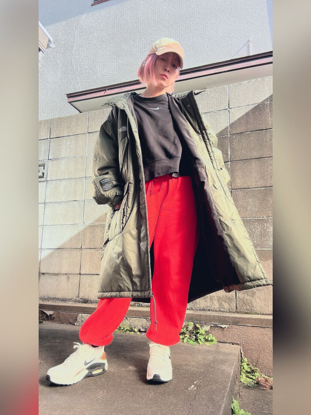 誕プレでいただいたnewスニーカーやっと履けた! オレンジ×カーキコーデをしたかった。 …ら、中が少し前のコーデと同じに😇w ✔︎ダウンコート:gu×undercover ✔︎tops:nike ✔︎スウェット:nike ✔︎sneakers:nike