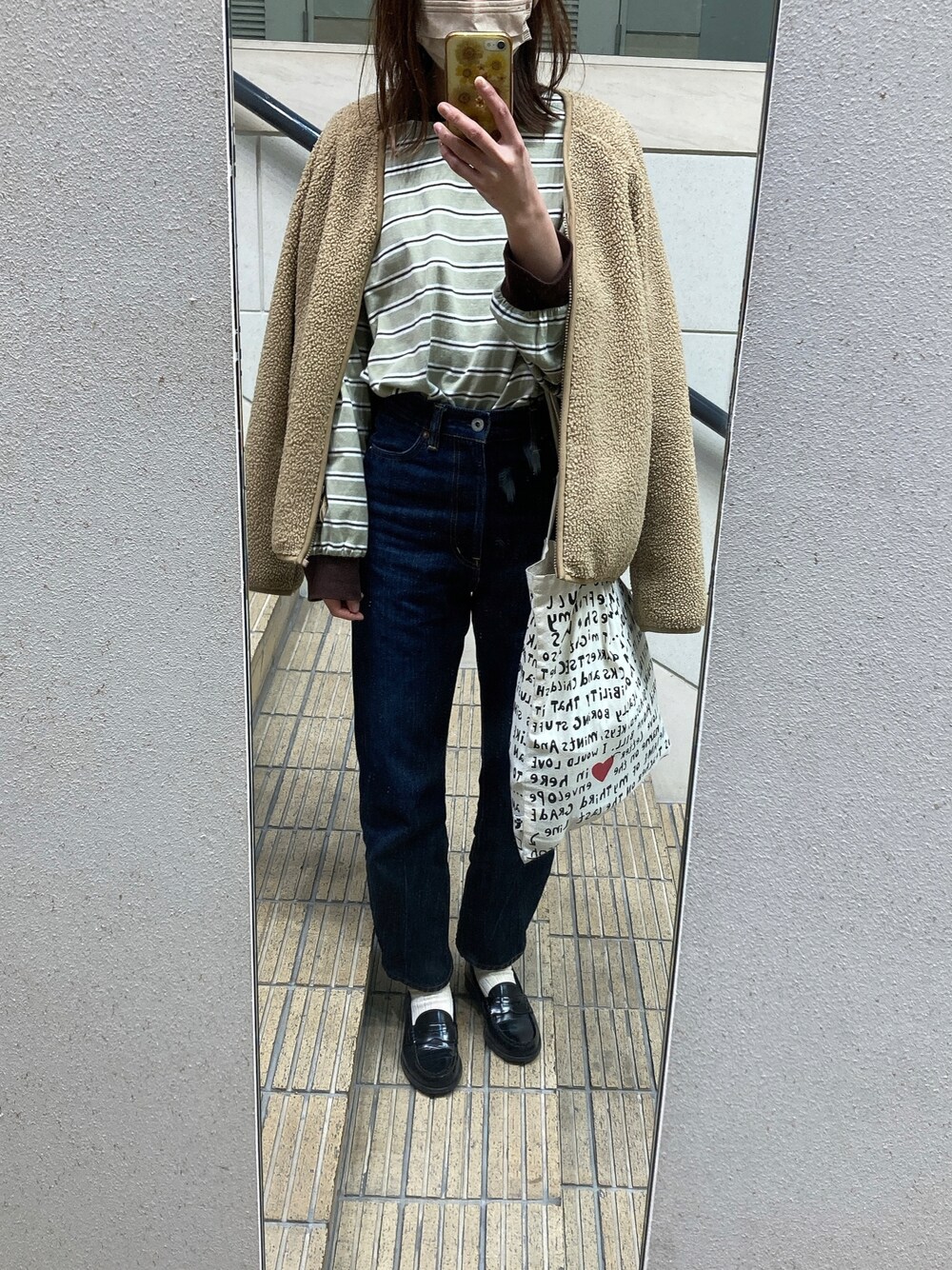 久々の今日のコーデ。 珍しいグリーンのボーダーがお気に入り。 ゆるっとたぼっと。リラックスカジュアル。
