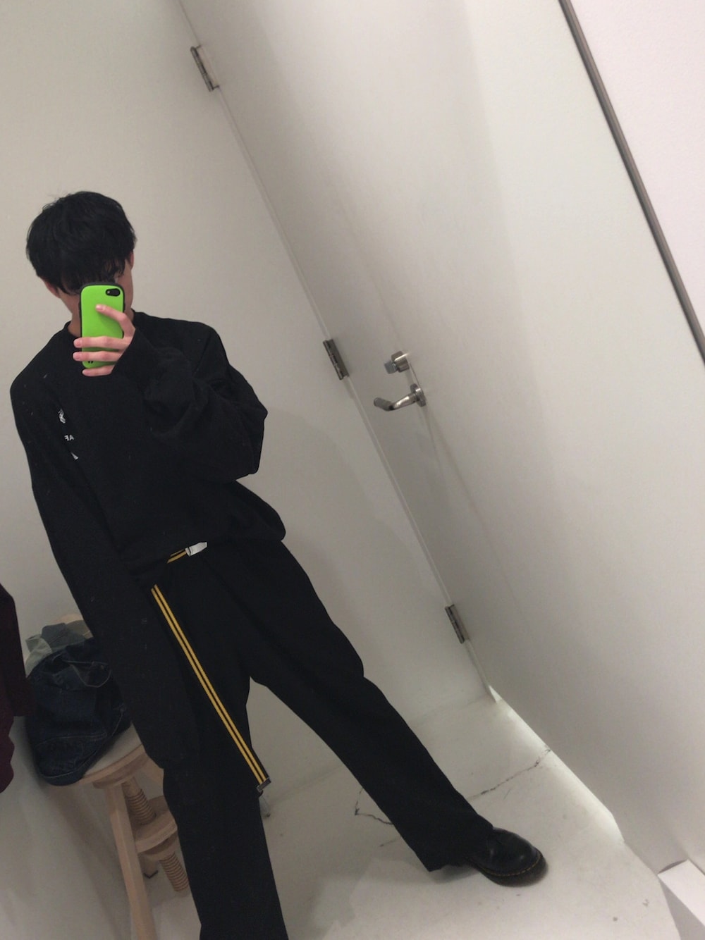 色々とやることが多くて投稿遅れました。ごめんなさい‼︎ 今回は、全体的に大きいシルエットのアイテムを使用しました‼︎ トップスが大きい分スタイルがよく見えます。黒コーデなのでベルトを黄色にしたのでよりかっこよく見えます。 みなさんもやってみてください!!