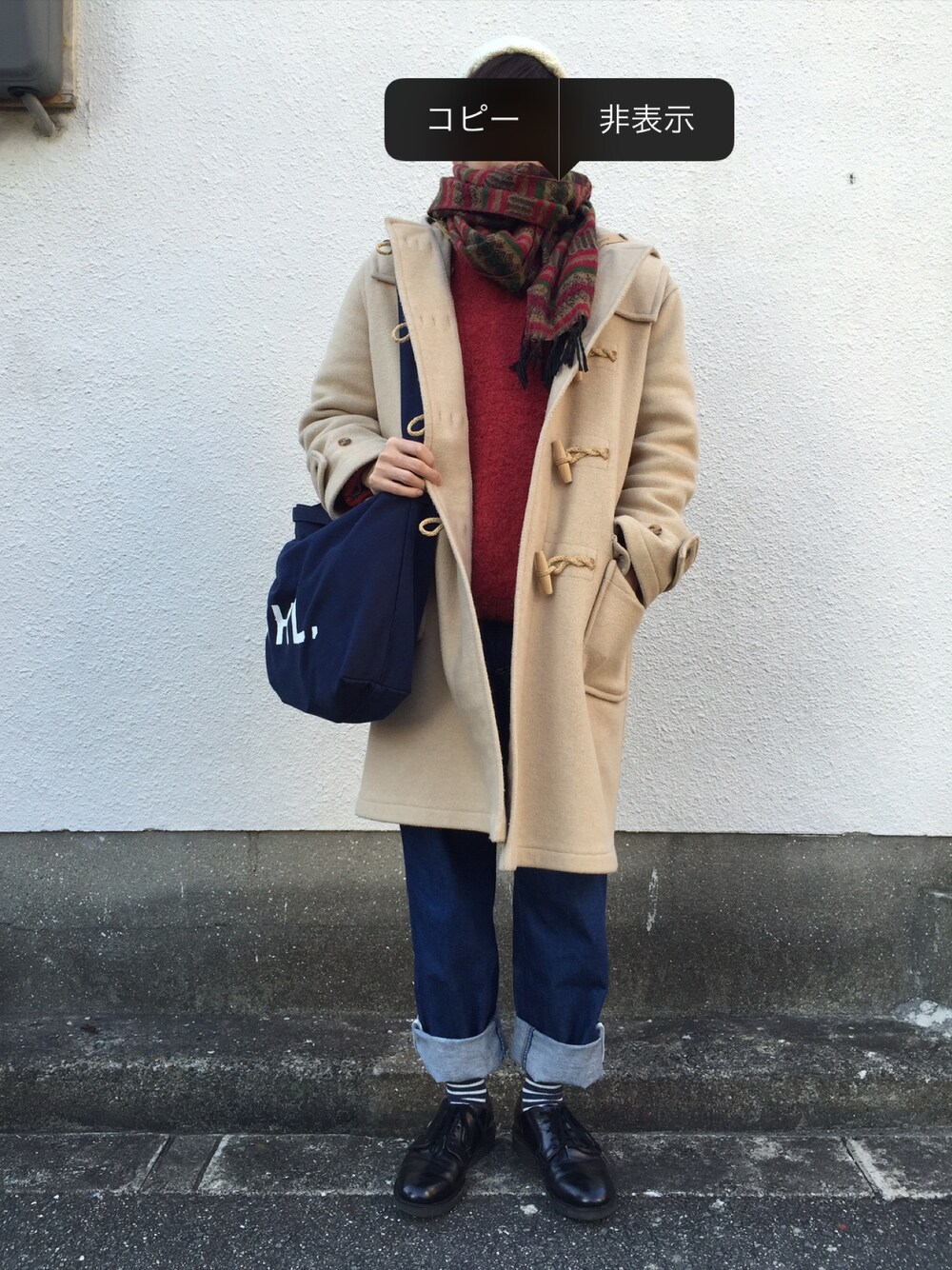 この間のドッグカフェ行った時のコーデ! このアウターを着たくてきたくて! ベージュ+赤のあたたかみのあるかんじに仕上げてみました! 地味にクリーム色のニット帽かぶってます!
