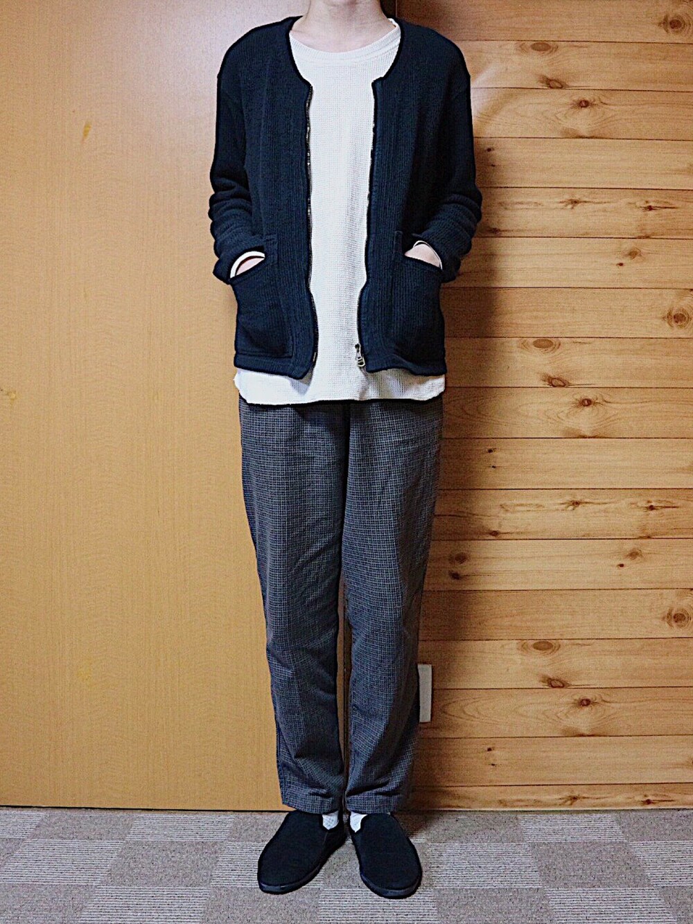 ぼくなりのシンプルコーデ。 ゆるい雰囲気のアイテムは欠かせません。