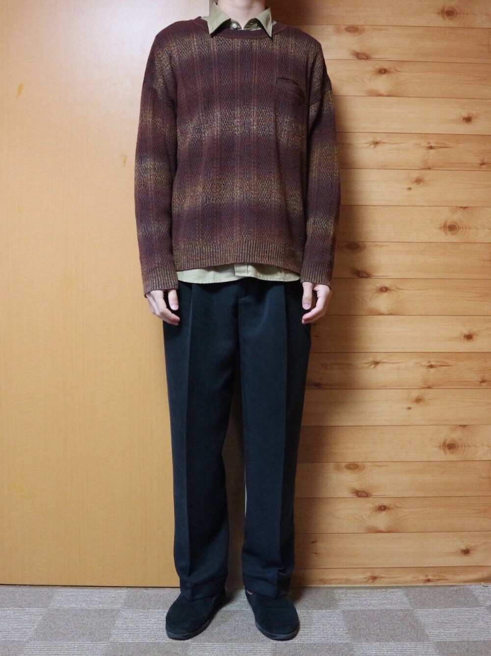 Episode no.,のニットは大好きですが、首元が広いのでインナーのTシャツが覗けることに悩んでいました。 あえてだらしなく着るのも嫌いじゃないので、それはそれでいいのですが、また違った着方もしてみたかったんです。 そこでインナーに、ニットと合いそうな色味のシャツ。無印良品でたまたま見つけて色味を気に入り購入しました。 今年はニットのインナーにシャツを使う着こなしも増やしていきたいな。