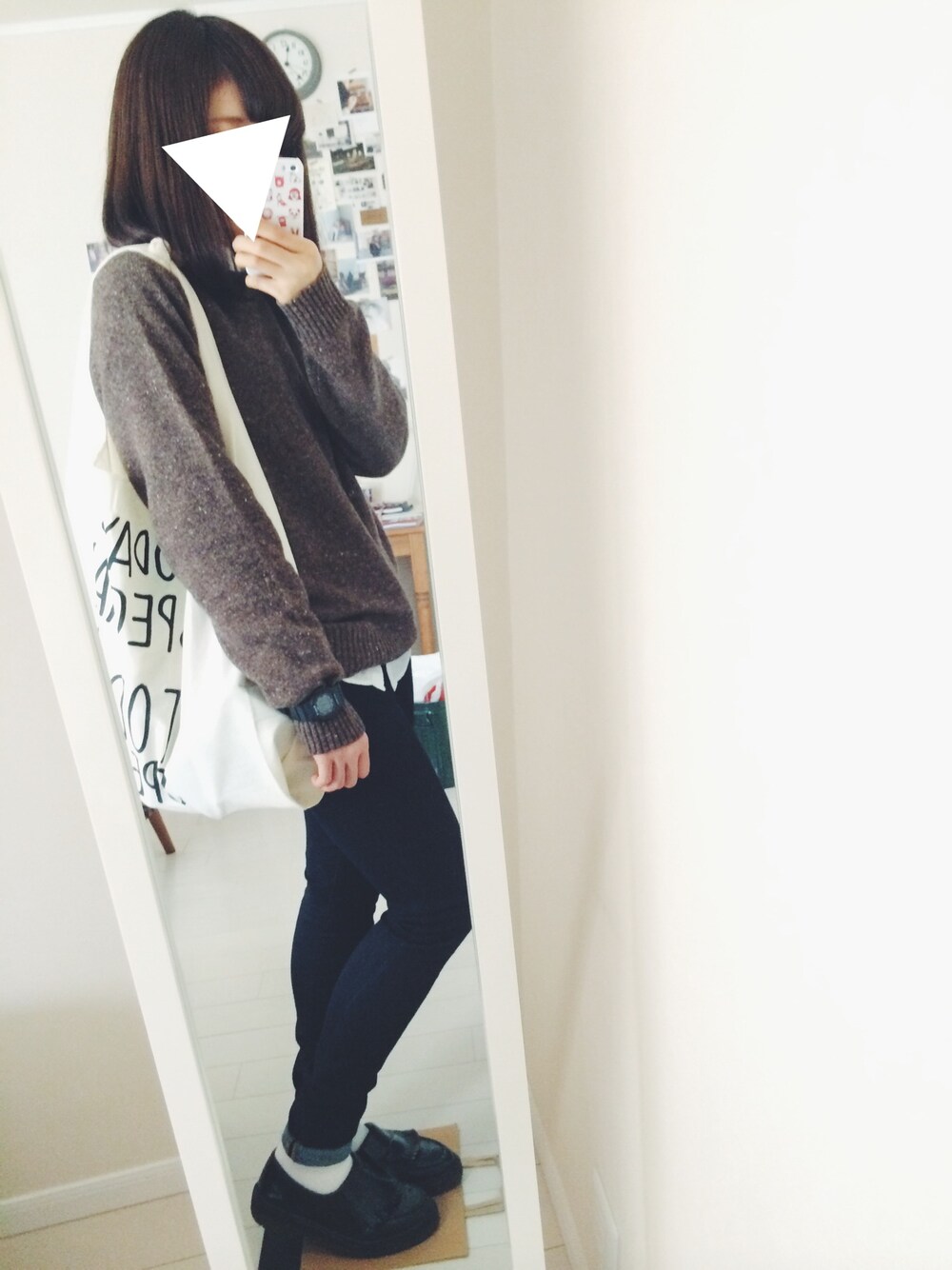 ニット: UNIQLO(MENS) 白シャツ: LEPSIM デニムスキニー: GAP 腕時計: Baby-G
