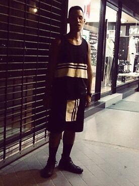 「Rik Villaのアイテム(タンクトップ、ブラック系)」を使った、MarshallTingさん(メンズ・173cm)の夏コーディネート