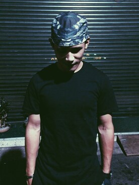 「Ovtarのアイテム(Tシャツ/カットソー、ブラック系)」を使った、MarshallTingさん(メンズ・173cm)の夏コーディネート
