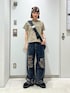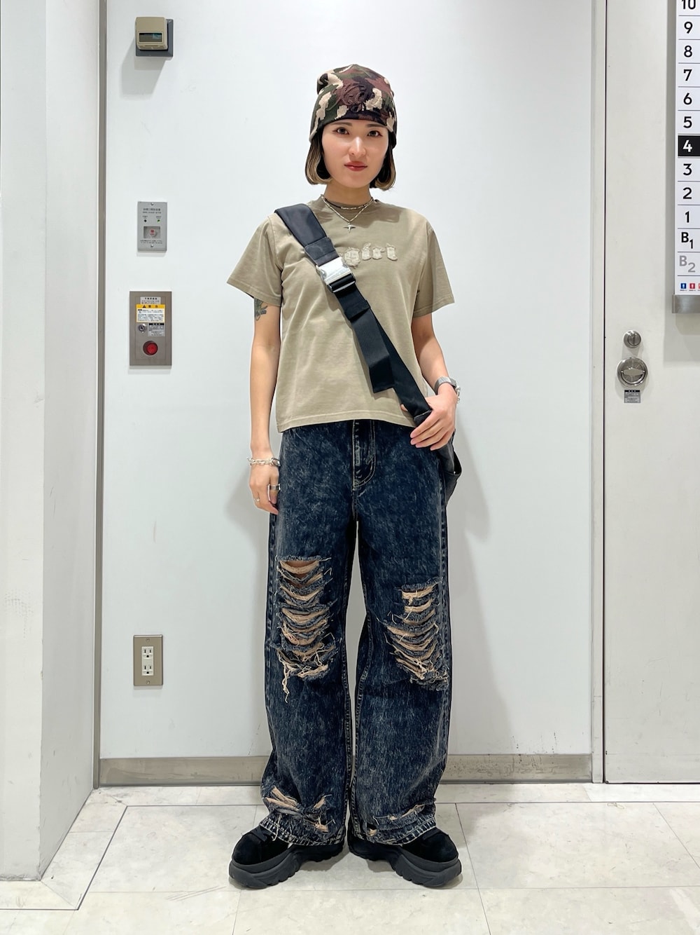 古着っぽいダメージや加工感のアイテムで合わせたコーディネートです! シンプルになりすぎないよう、カモ柄でアクセントを入れているのがポイントです!