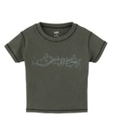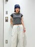ラインストーンのビーニーをメインに、他はシンプルでまとめたスウェットパンツコーデ。ざっくりしたサイズ感のチビteeでもロゴデザインがしっかり入っているのでダル着感なくお洒落に着られます!
