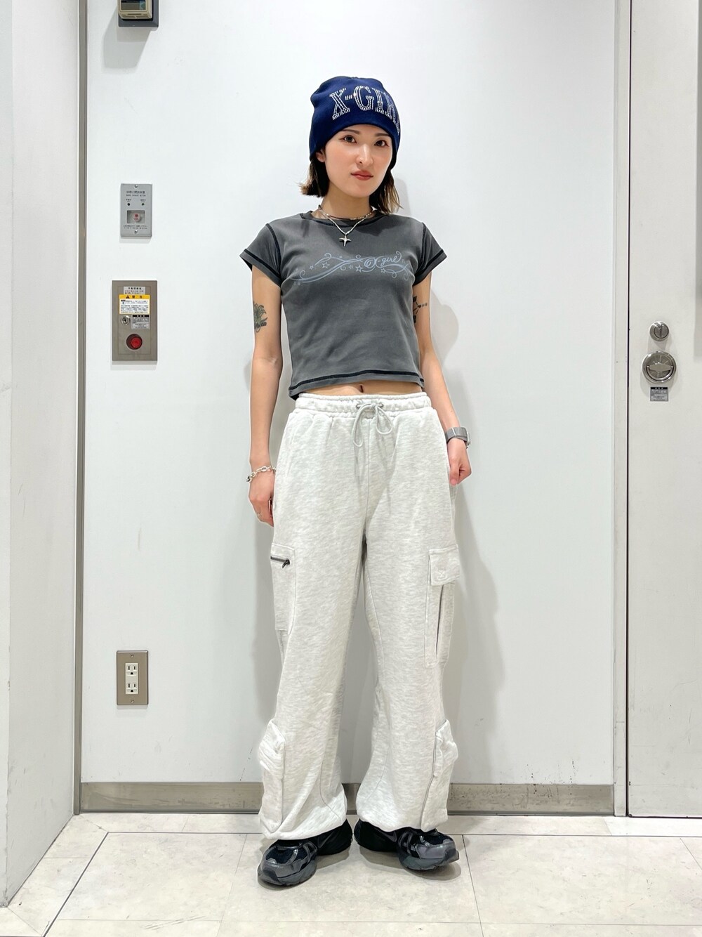 RIN KAGWA(ROSE BUD 広島パルコ)のスウェットパンツ「FACE LABEL MULTI POCKET SWEAT PANTS」を使ったコーディネート