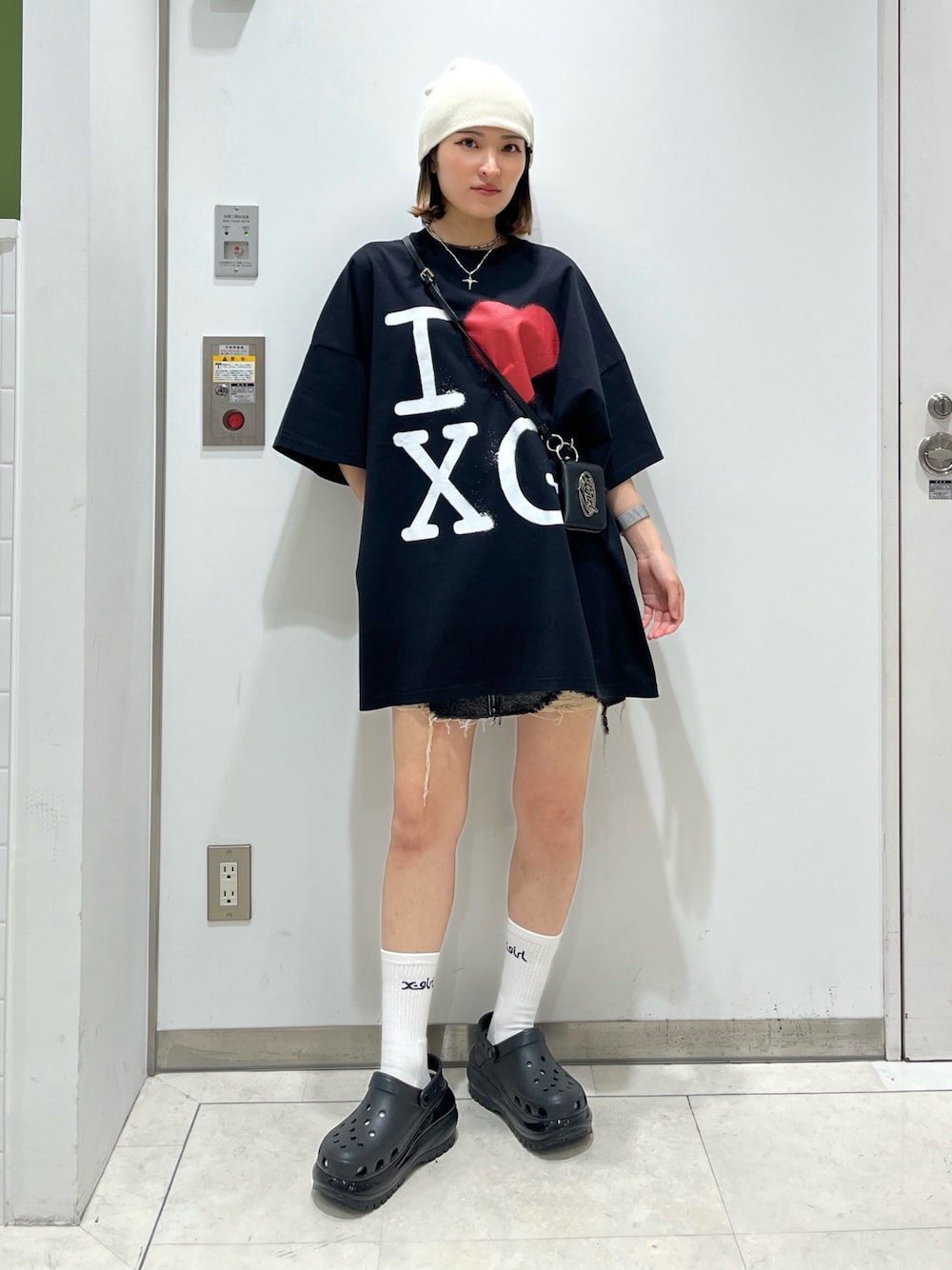 RIN KAGWA(ROSE BUD 広島パルコ)のワンピース「STENCIL I LOVE XG LOGO S/S BIG TEE DRESS」を使ったコーディネート