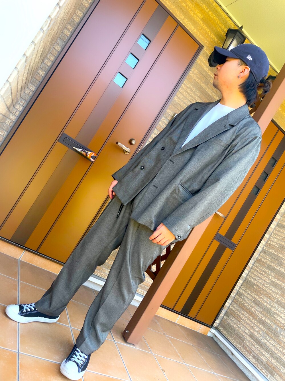 昨日の一枚📸 セットアップコーデ! 秋はツイードよね!! かっちりした色のセットアップをキャップとスニーカーで外しました👟