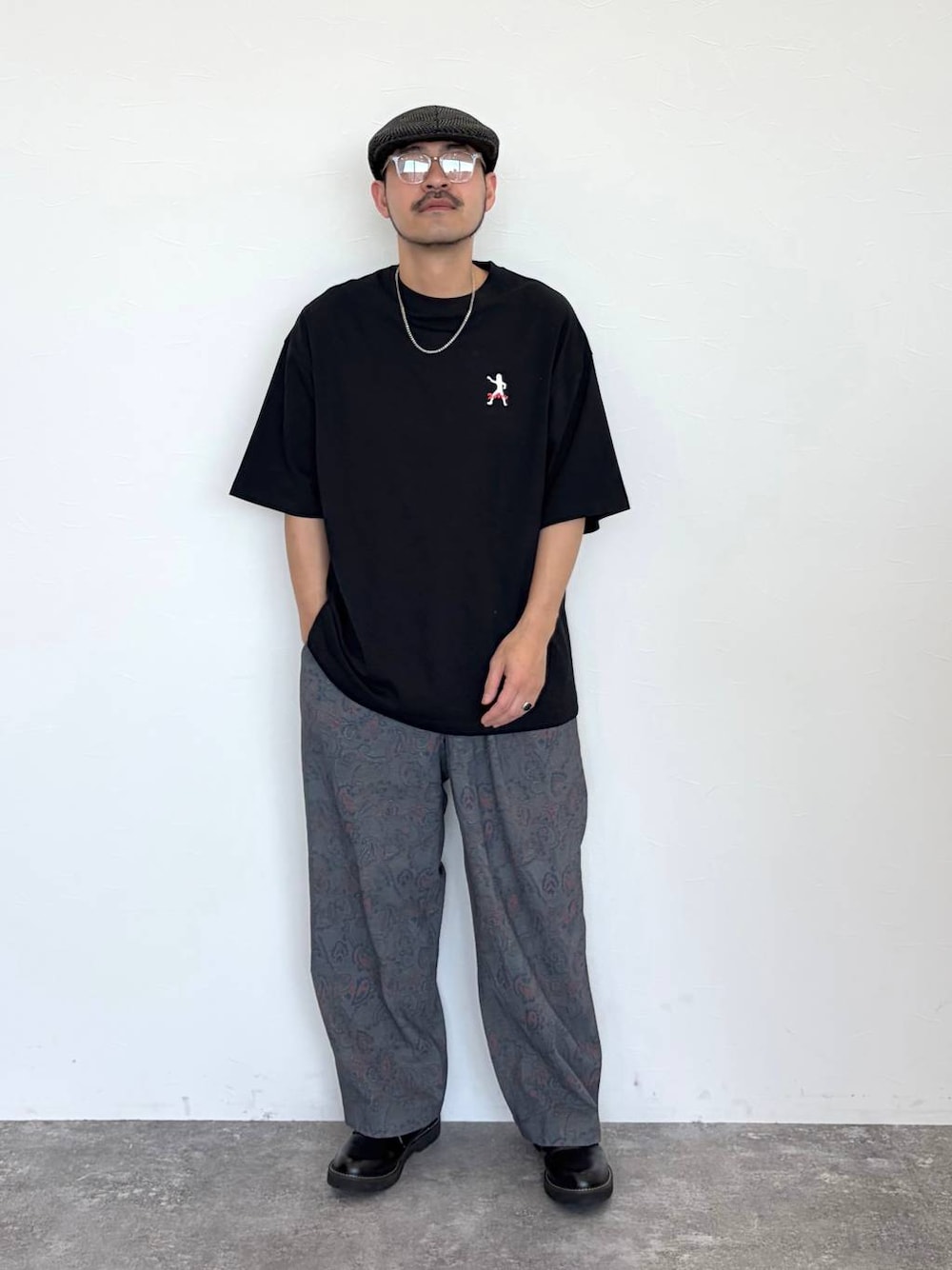 【ウルトラマン】ダダのインパクトを、大人の総柄で渋く着こなす。 ✅スタイリングのポイント バックに大胆にプリントされた「ダダ」が主役。フロントはあえてシンプルに、ボトムスにはグレーベースのペイズリー柄パンツを合わせて、大人の余裕と遊び心をプラスしたモノトーンストリートです。 ✅サイズ感・着心地 Tシャツはフリーサイズで、肩が落ちるゆったりとしたシルエットが今の気分。パンツも程よいワイド感で、リラックスして履けるので、これからの季節にぴったりです。 ✅おすすめシーン インパクトのあるデザインなので、横浜の街並みや音楽イベントなど、カルチャーを感じる場所で着てほしい一着。立ち飲み屋でも会話のネタになること間違いなしです。 staff spec 身長:172cm 体重:70kg 靴:28cm、年齢:40歳 ↓↓↓ 毎日投稿orストーリーズ更新中! スタッフボード以外のコーディネートやコンテンツ、オフショットなど