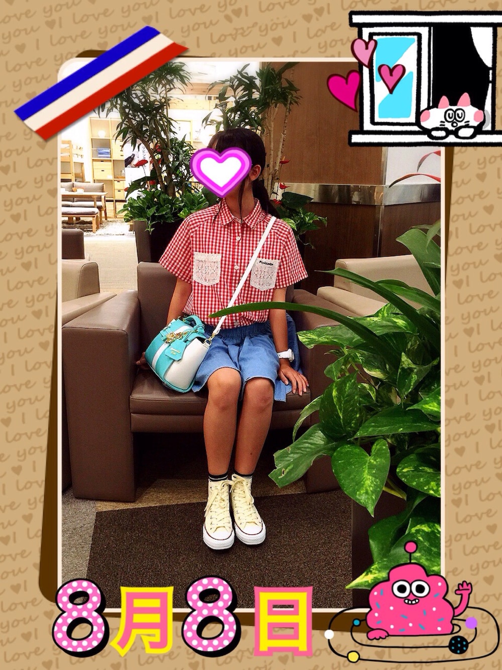 ギンガムチェックのシャツを使って夏らしくコーデしてみましたv(。・ω・。)ィェィ♪