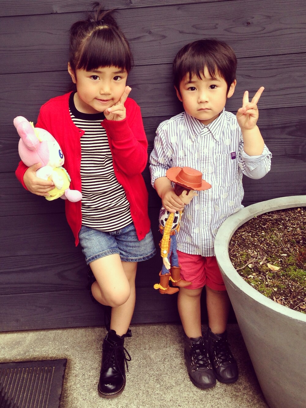姉 ボーダーT…アニエスベー カーディガン…アニエスベー パンツ…フィス 弟 シャツ…スムージー パンツ…スムージー