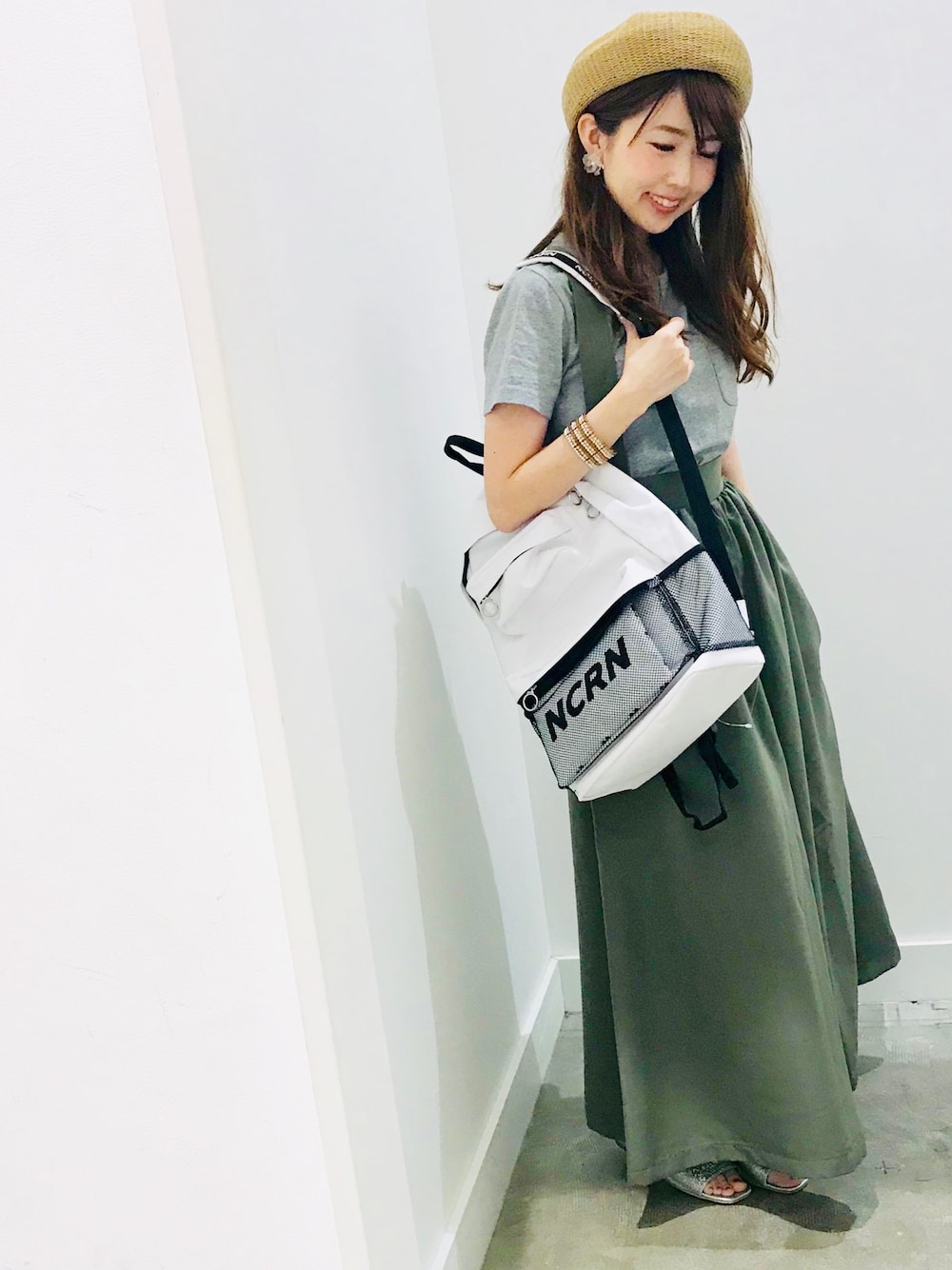 サスペンダー付きパンツは153の私でも着こなせる丈😊✌️ しかもお値段も魅力的👀 ニコロンのリュックはポーチがついていて何かと便利♡