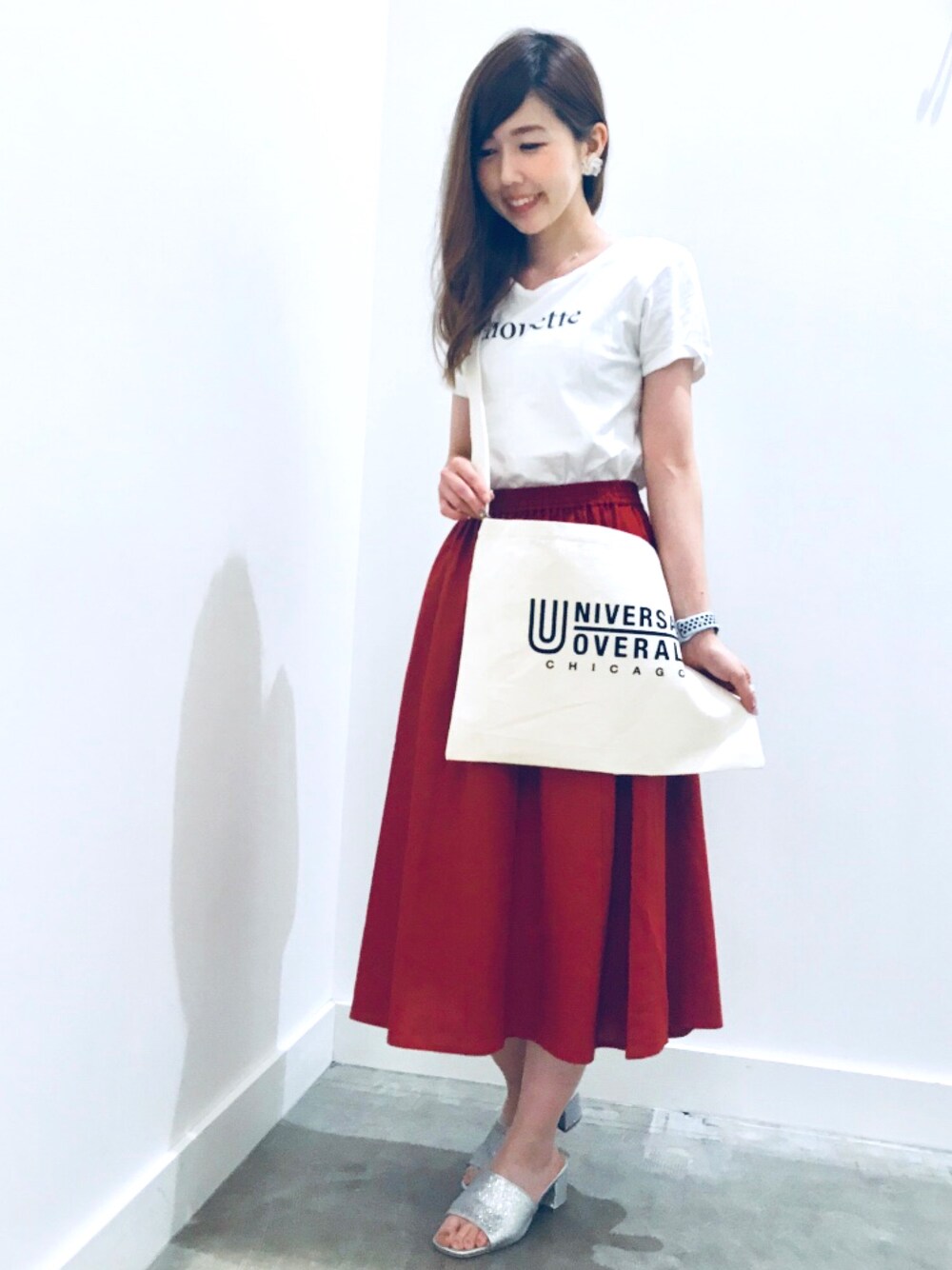 Tシャツはシンプルなデザインでどんなアイテムにも合わせやすいです😊 ストレッチがきいていて、着心地も抜群です!! スカートは麻入りなので夏にピッタリですよー😊 サコッシュが気になった方はイーハイフンの公式サイトを是非ご覧ください♡ 5/21までの期間限定のノベルティです!!