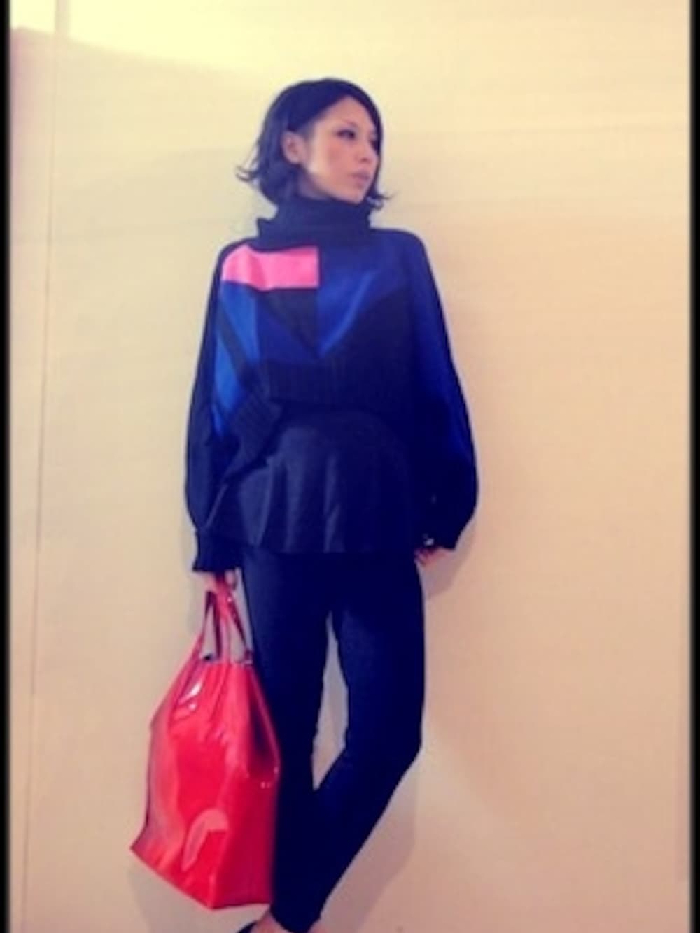 coordinate「BIG KNIT × PEPLUM」 まだまだコートがいらなさそうな日には、、 ペプラムシルエットのオールインワンにビッグニットをプラスしました。 KAMISHIMA CHINAMI YELLOW のエナメルトートを差し色に使ってます^^
