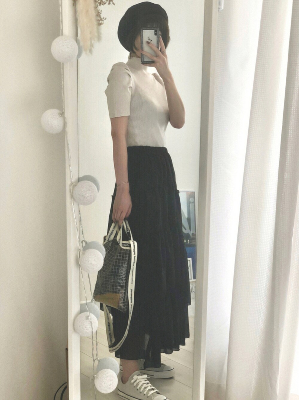 ティアードスカートも 黒だとすっきり見えて タイトめなトップスとの相性◎