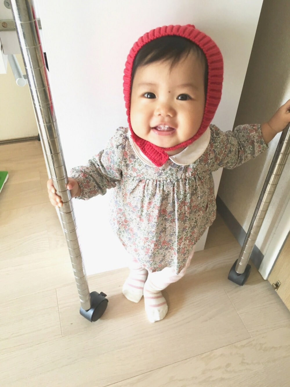 撮影場所が定まりません。 今日は赤ずきんちゃんです。 基本的には帽子を嫌がるのに、 このこびと帽だけはノリノリでかぶってくれる。