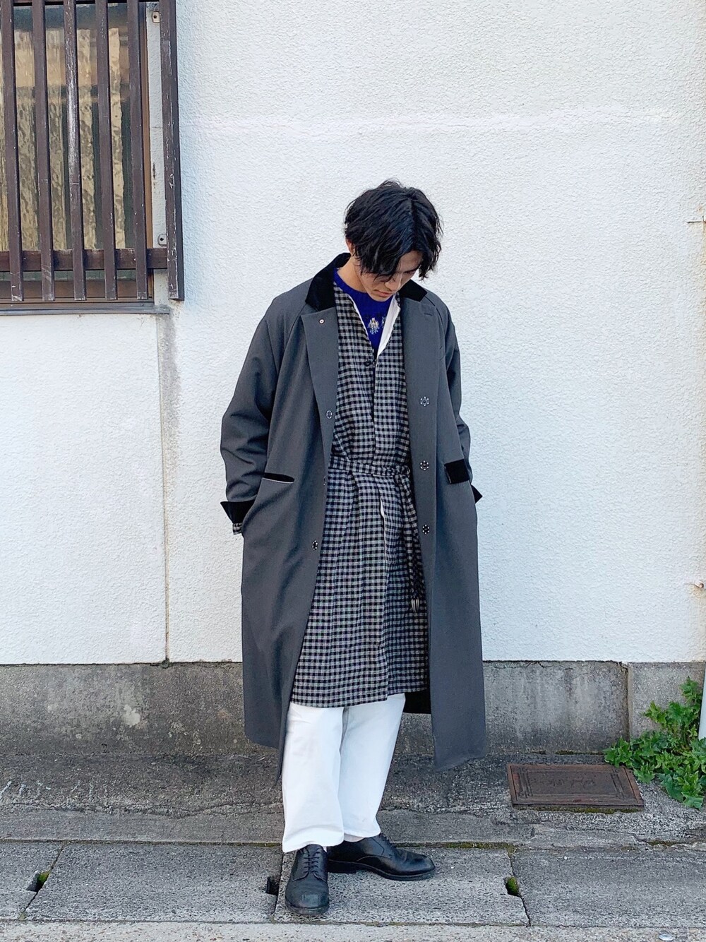 誰ともかぶらないコートスタイルどーぞ 少し丈の短いコートを中に着込むと よりいい味が出ます そこからパンツの白の強調もあると より一層周りとは違うスタイルの 出来上がり
