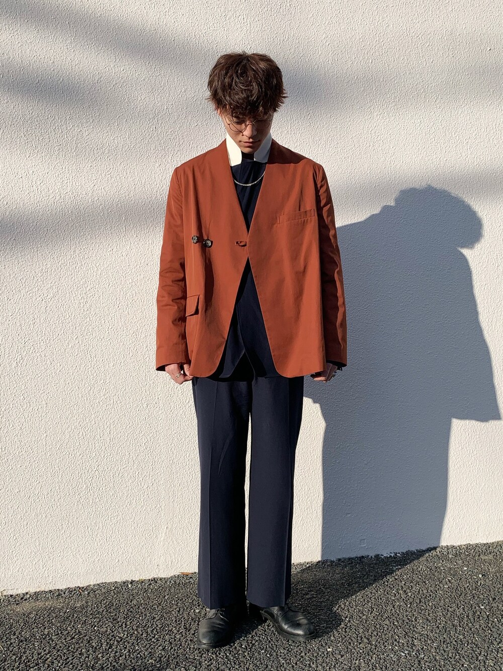 久しぶりの投稿です! セットアップだけじゃ物足りない方は 上からもう一つゆったり目のジャケットを来合わせてアクセントかつ防寒をするのも わざと一つだと思います、 このコーデの1番の大事なところは首元です