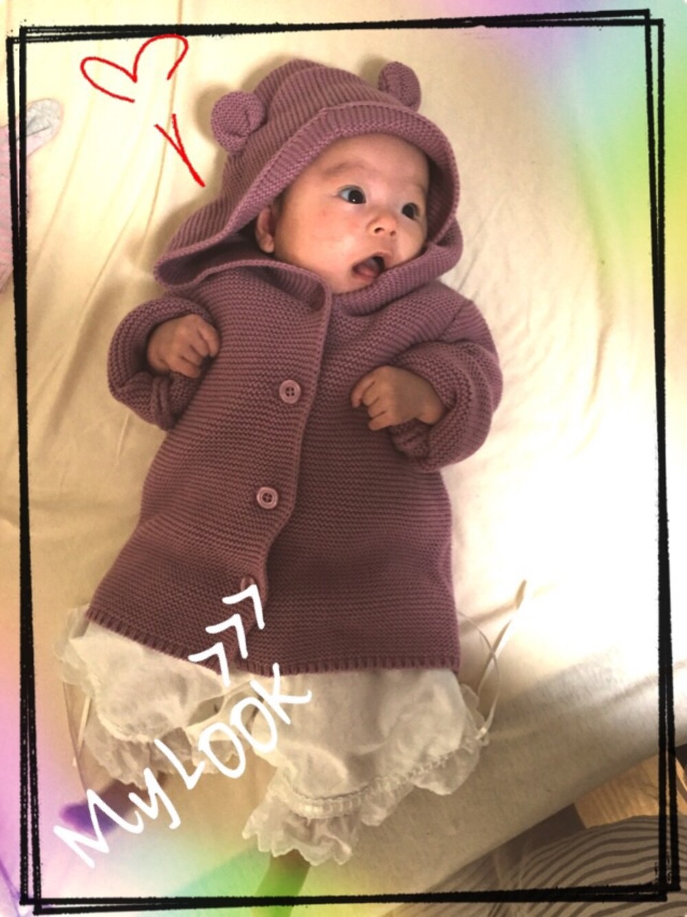 寒くなってきたからGAPのくま耳カーディガン♡ まだぶかぶか〜!