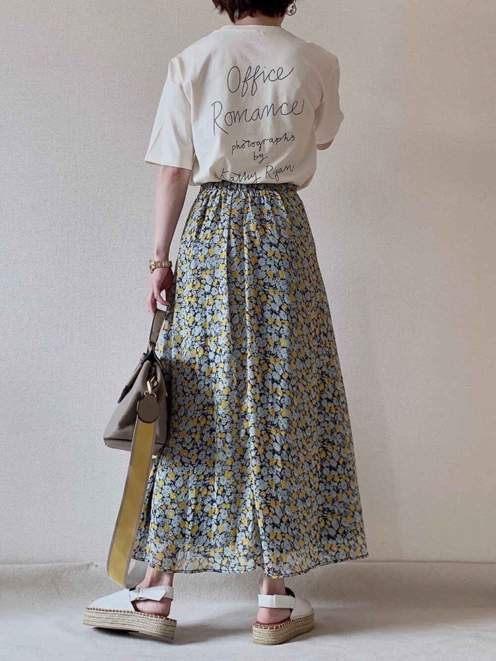 ロゴT×花柄スカート