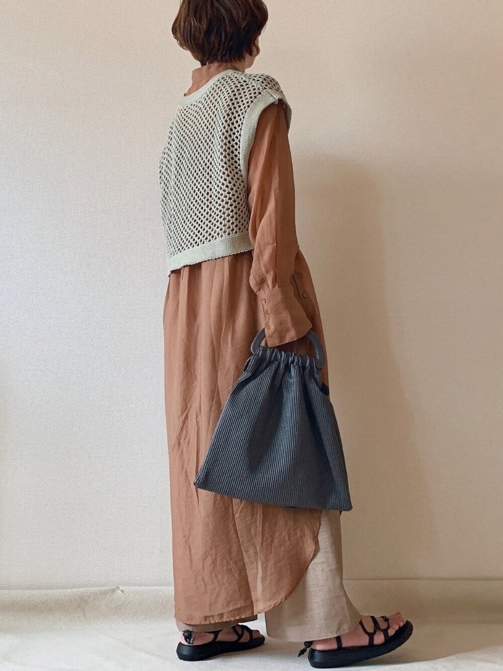 メッシュとシースルー レイヤードコーデ