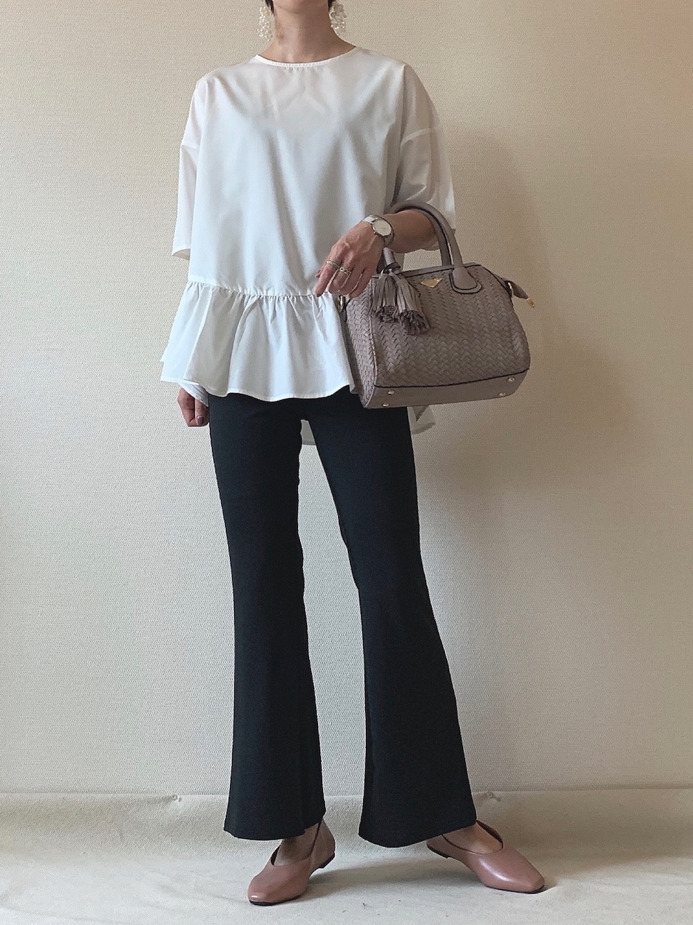 0810.asのハンドバッグ「2way総レザー編込みーショルダーバッグ/ハンドバッグ」を使ったコーディネート