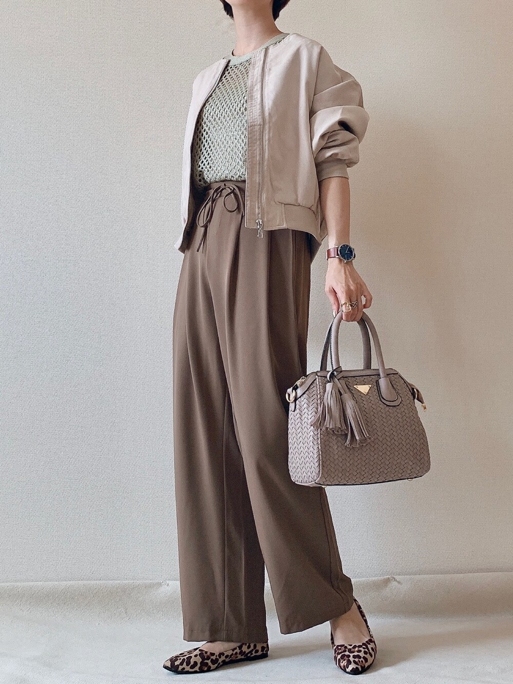 秋のくすみカラーコーデ ピンク×グリーン×ブラウン