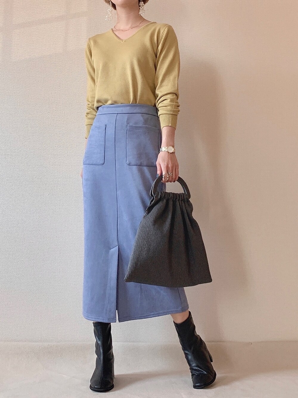 《GU新作》秋冬カラーに惹かれた スカート✧*。❄️ スエードタッチだから肌触り◎ 身体のラインにもひびかず 足さばきも良いから歩きやすさも◎ 前ポケットだけど、 前後逆に履いても可愛いスカート👏🏻 カラー×カラーで組んだり ブラウンで統一しても可愛い🥰 @gu_for_all_ スエードタッチナローミディスカートQ (品番:327705)