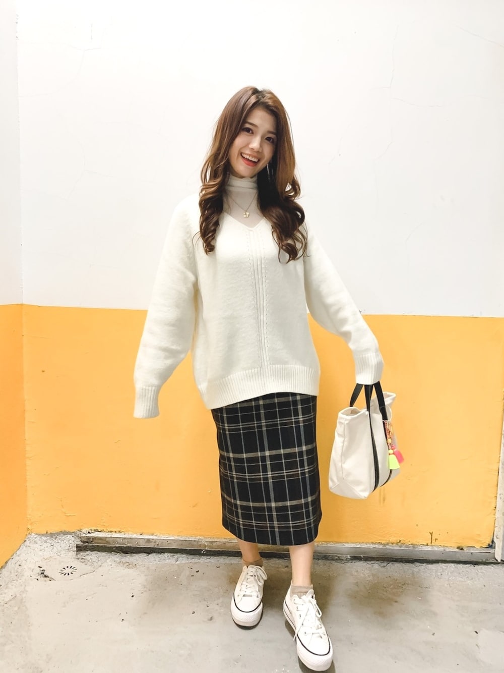 White Sweater Look チェック Ins:kicocake