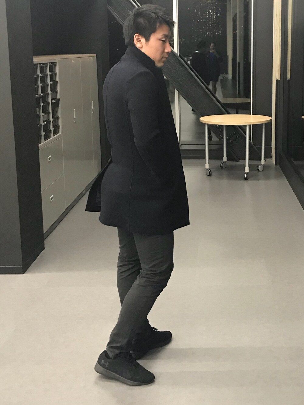 落ち着いた雰囲気のアンダーアーマーのシューズ。ちょっとフォーマルな感じでも、違和感なし、かな。