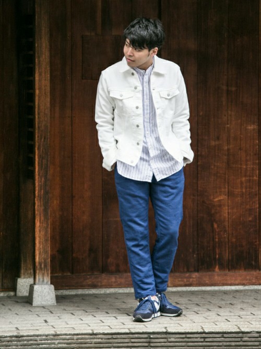 kida(DOORS くずはモール)のシャツ/ブラウス「DOORS ドビーストライプバンドカラーシャツ」を使ったコーディネート