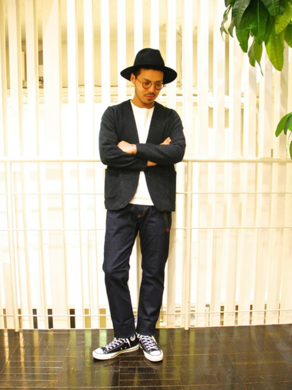 ポイントはGramicciのデニム。 細身なシルエットなので、ジャケットやシャツなどキレイ目なアイテムとの相性も抜群です。 ジャケットのインナーをTシャツにすることで、よりカジュアルに気軽に着こなしていただけます!
