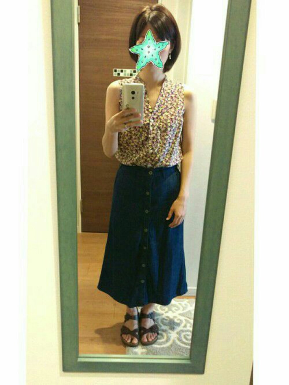 ノースリーブシャツは好きでよく着ます 今日も歩くので歩きやすいサンダルで 夜は浴衣着て花火行ってきまーす🏮👘🎆🎆