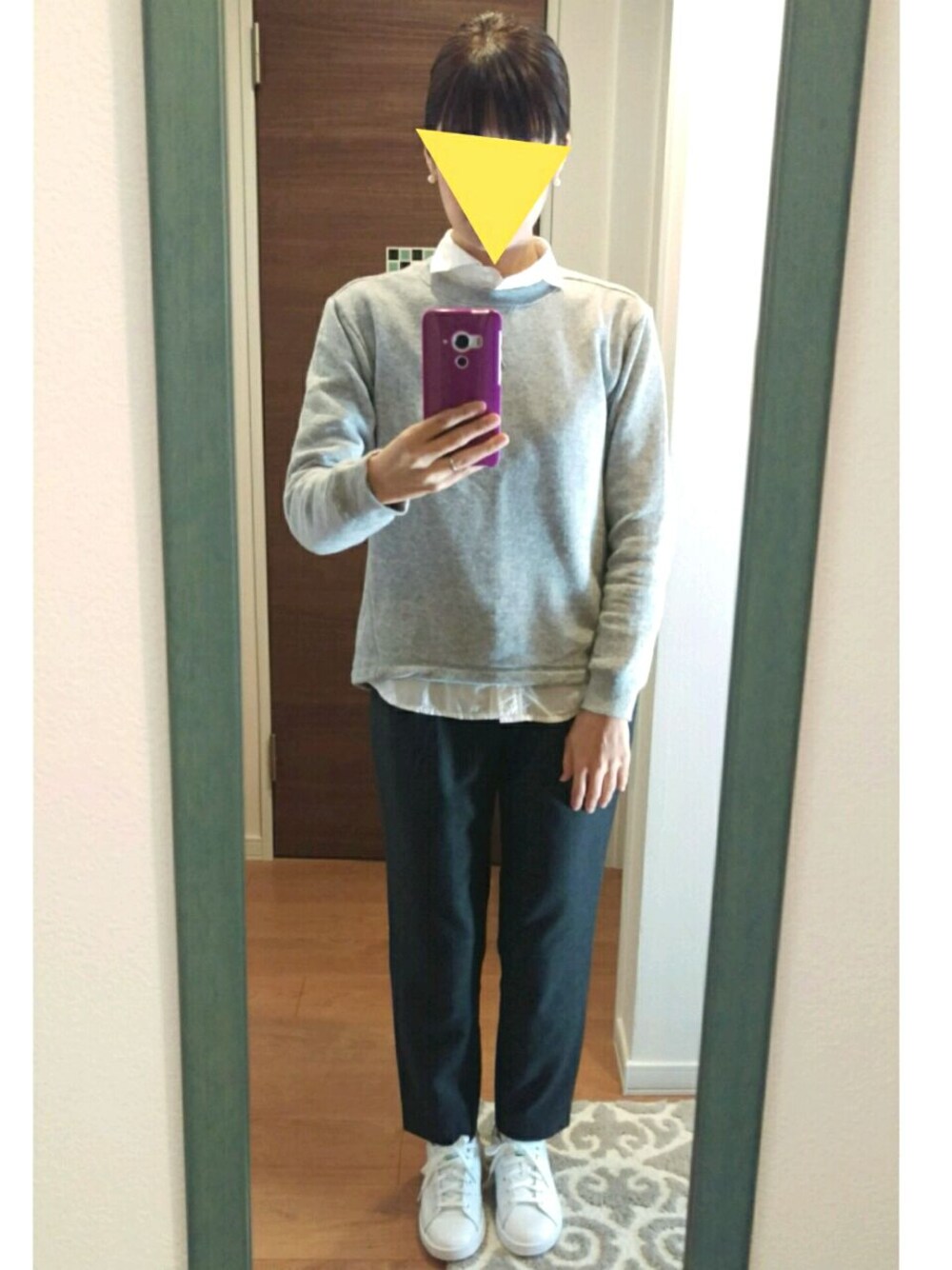 モノトーンでまとめました。 無印のスウェットは前が短くなっていてシャツとの相性良いです☆