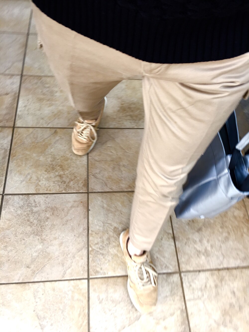 モックネックのニット、腕まくり、やーよ!