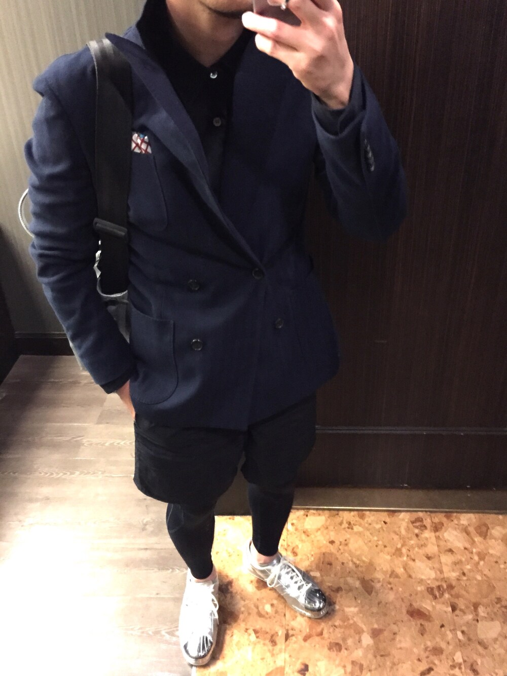 きっどマンのテーラードジャケット「○LARDINI / コットンバスケット 4ボタンダブルジャケット」を使ったコーディネート