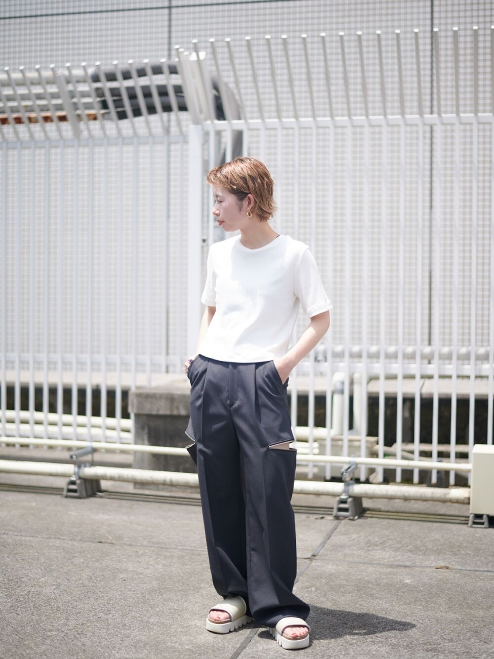 夏のマストコーデの白Tコーデ! 今年はボトムスにエッジを効かせてデザインボトムスとコーデ。