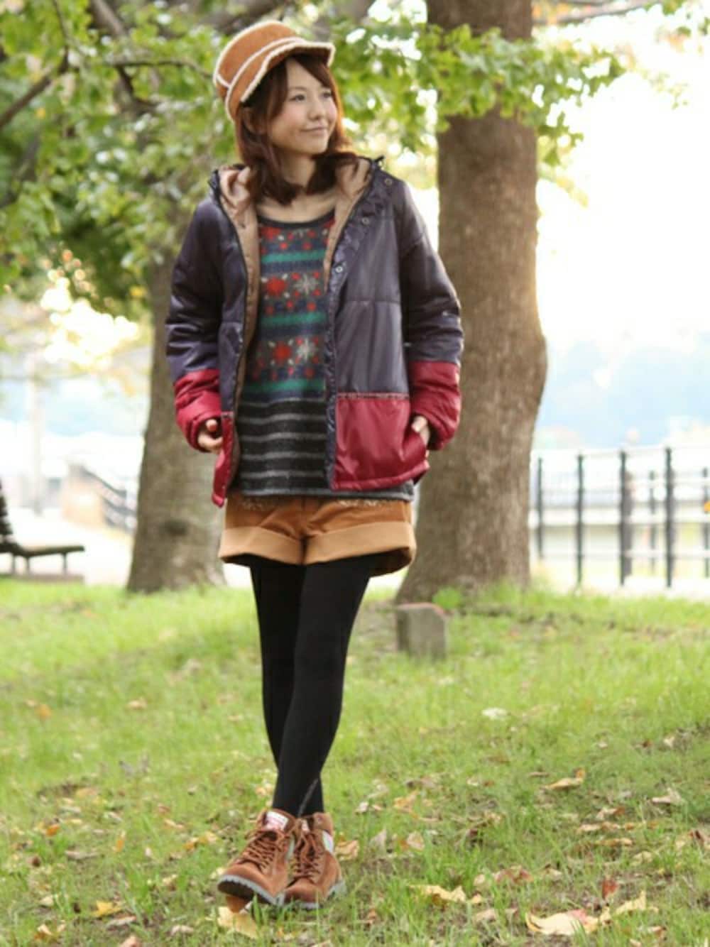 大人の休日山ガールコーディネート。 アクティブに過ごす日はカジュアルなスタイリングで。 落ち着いたブラウンやネイビーの色合いで全身をまとめました◎