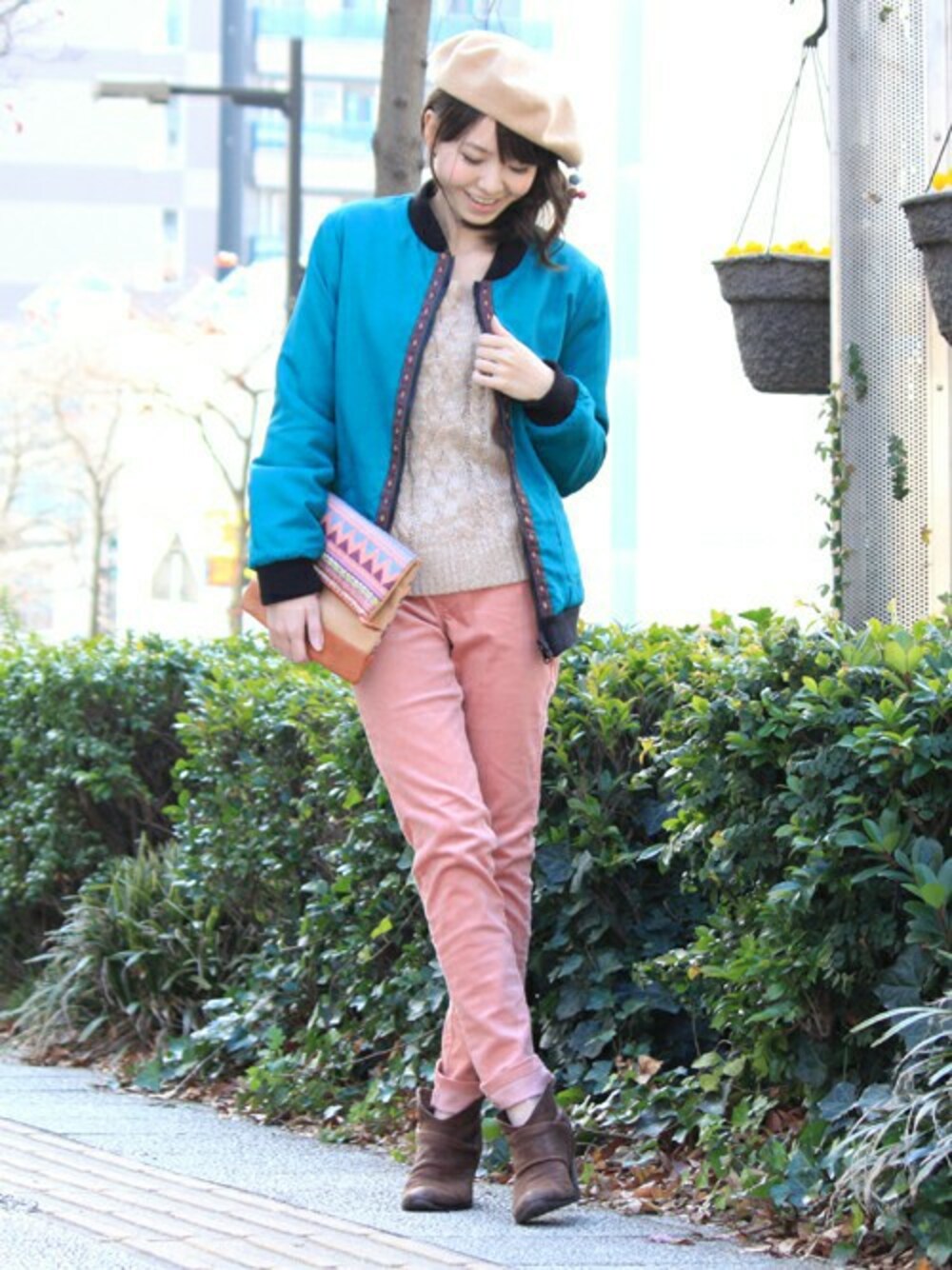 ボーイズ感たっぷりなMA-1を女性らしい雰囲気に着こなしたスタイリング。 少し大き目のサイズに細身のパンツを合わせてガーリーコーデのアクセントに。