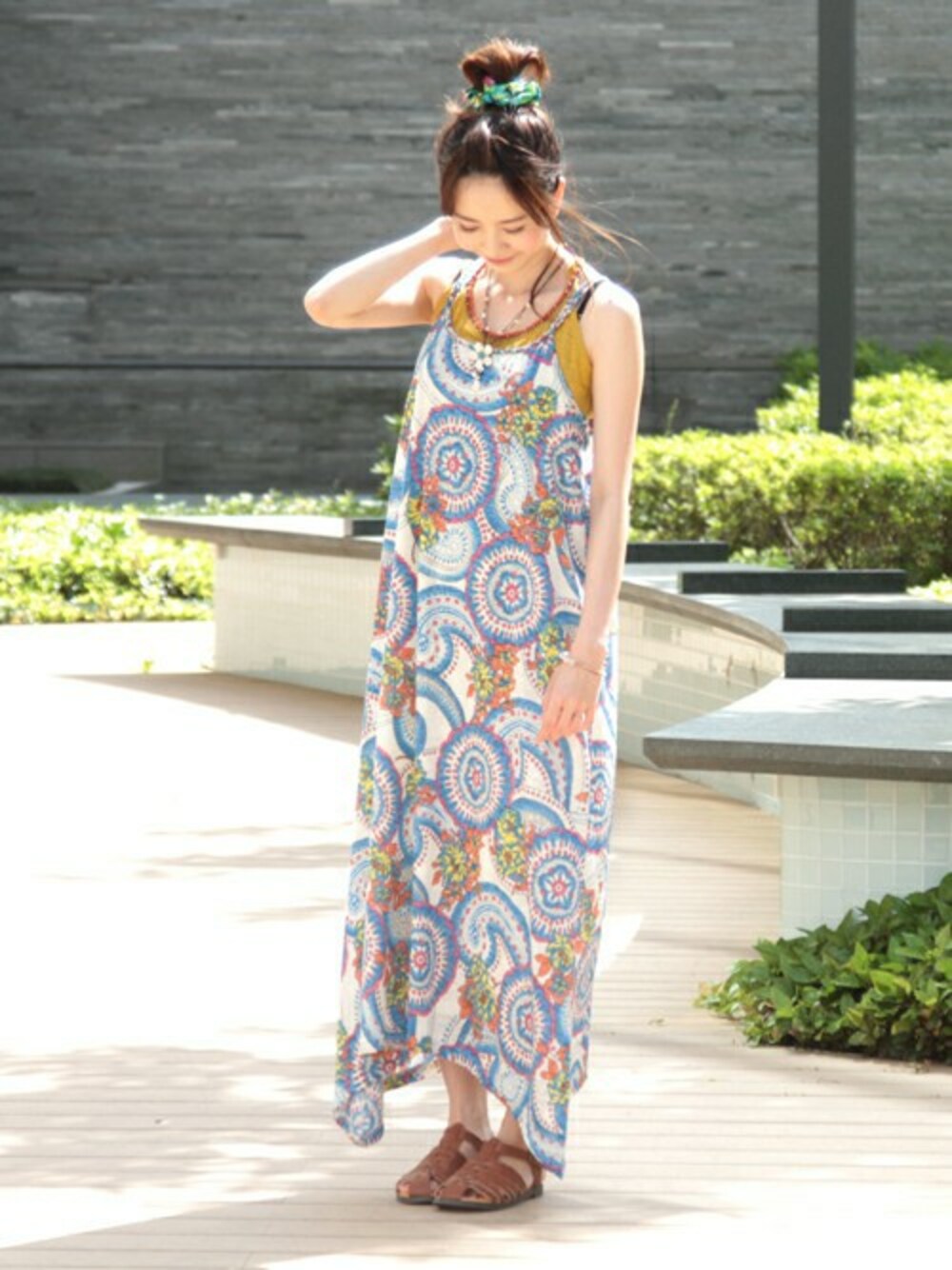 エスニックの雰囲気をたっぷり感じられるマキシ丈ワンピース。 さらっと1枚で着られるラフな表情が涼しげ♪