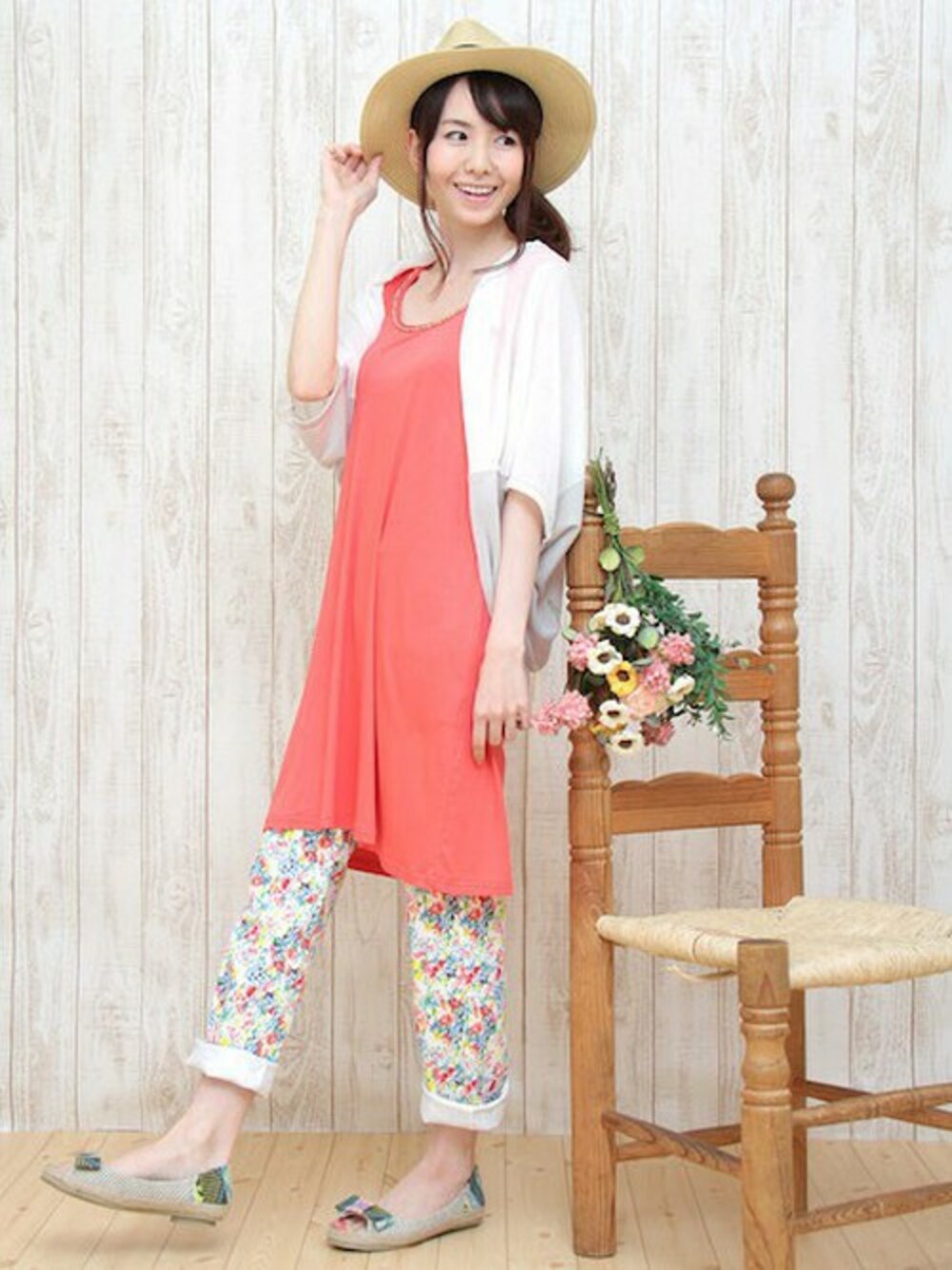 素材が涼しげな小物をプラス~ ハットやサンダルだと季節の変わり目は、取り入れやすい♡