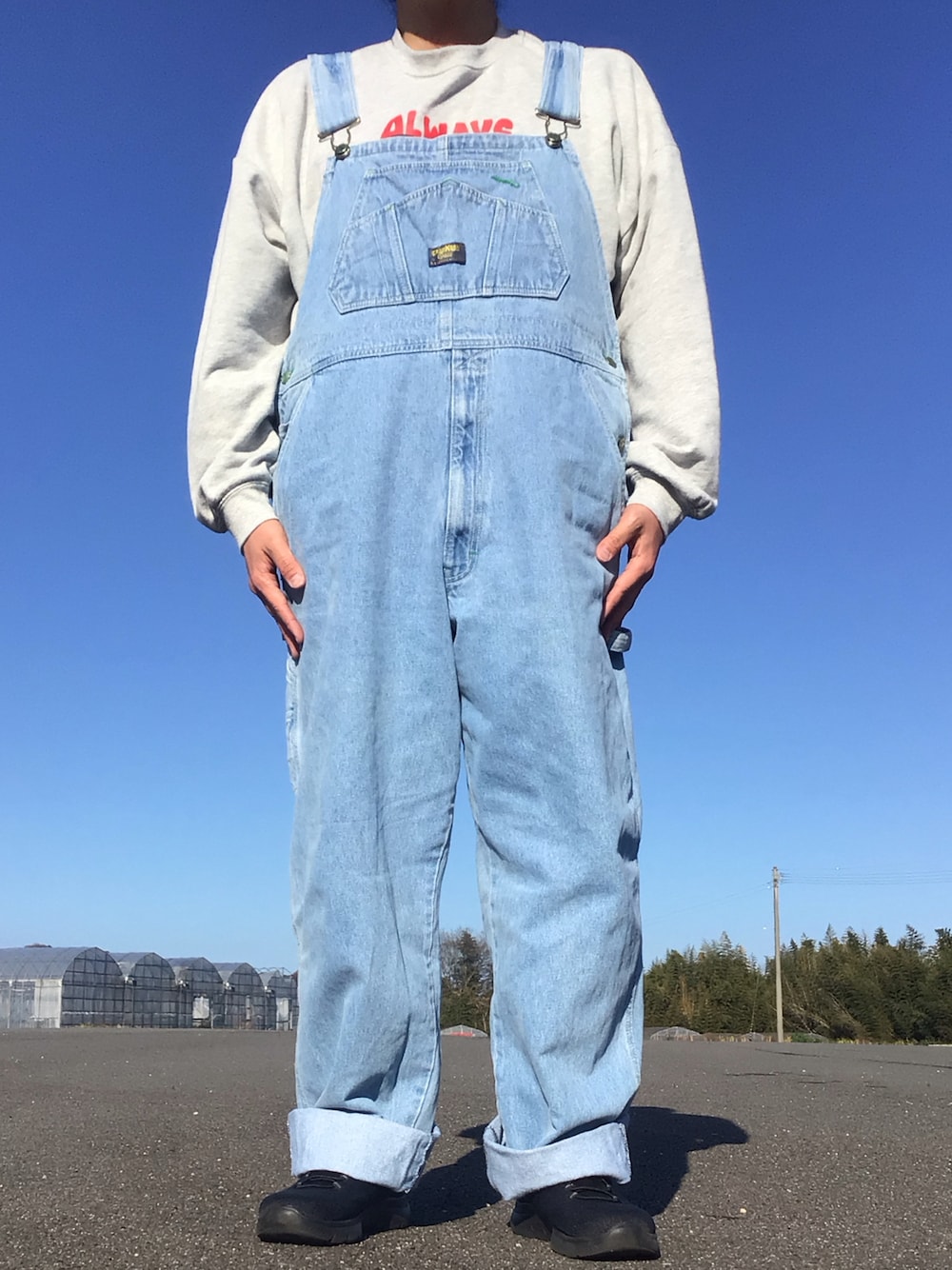 昼間は暖かいを通りこしてちょっと汗ばむくらい。先日古着屋で見つけた新しいオーバーオールを初着用。きれいな薄青色で、胸ポケットのデザインが可愛くてサイズもゆったりしてちょうどよくて欲しくて買いました。今日はシンプルに中にグレーのトレーナーを入れました。きれいな青空とちょうどよく合ってる。中のトレーナーはWEGOのグラフィックプリントトレーナーです。胸に犬がメニュー見てる絵がかわいいですが、オーバーオール好きだから、今日も中に入れちゃってかわいい絵は隠れちゃってます。他のだと全部消えちゃうのもあるけど、このオーバーオールは赤いALWAYSのロゴは見えててこれがかわいい。オーバーオールはお腹まわりがゆったりして楽ちんだし、中にトレーナーやTシャツ、何入れても合って季節問わず着られるし、いろいろコーデできちゃうから毎日着ても飽きないくらい。これから夏に向けてオーバーオール大活躍の季節。このオーバーオール着てみるとますます可愛くて、これからトレーナーやロンT、パーカー、暑くなったらTシャツ入れていろいろコーデ楽しみたい。オーバーオール大好き