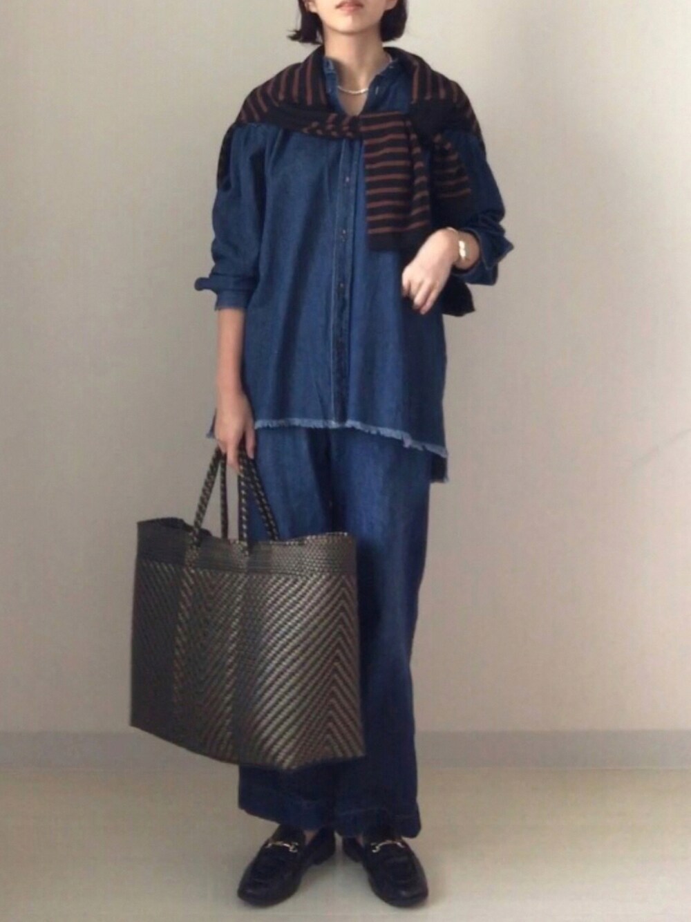 フリンジデニムシャツ × パネルボーダーニット × リカバーデニムパンツ ┈┈┈┈┈┈┈┈┈┈┈┈┈┈┈┈┈ いつもいいね♡フォロー ありがとうございます! セットアップ風コーディネート☝🏻 ワーク感もありつつ小物で 綺麗めハンサムにまとめました👔 パールネックレスでアンバランスな気分です♡ ボーダーニットを新調🍁 今年はブラウン×ブラックにしました 意外と選んでこなかった組み合わせ 着回しします! ┈┈┈┈┈┈┈┈┈┈┈┈┈┈┈┈┈ Present fair🎁開催中です! 今回はミニウォレットです♡ カードが5枚収納可能でカラーも素敵です♡ 店頭・オンラインショップでぜひ🤲🏻 お待ちしております!