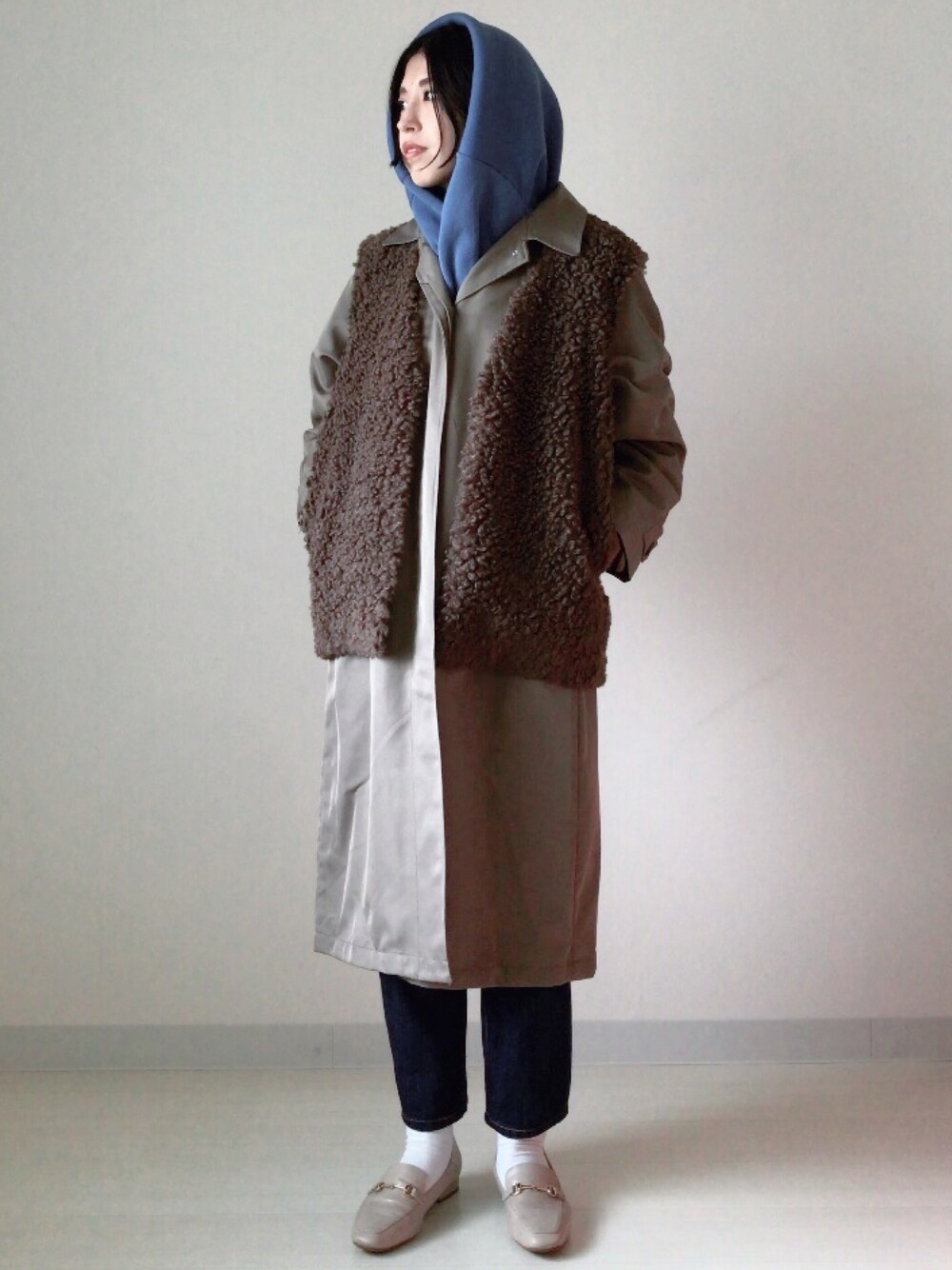 撥水加工ステンカラーコート + ボアベスト +クルーネックニット + 5ポケットデニムパンツ ┈┈┈┈┈┈┈┈┈┈┈┈┈┈┈┈┈ いつもいいね♡フォロー ありがとうございます!! 撥水加工ステンカラーコートに ボアベストの組み合わせ🐻 寒くなってきたので早速! クルーネックニットもバラクラバ風に💁🏻♀️ 今年は寒くなる予報なので 防寒も楽しく過ごしたいです⛄️ ┈┈┈┈┈┈┈┈┈┈┈┈┈┈┈┈ お買い物が楽しい季節ですね♡ ぜひ店舗へお立ち寄り下さい~